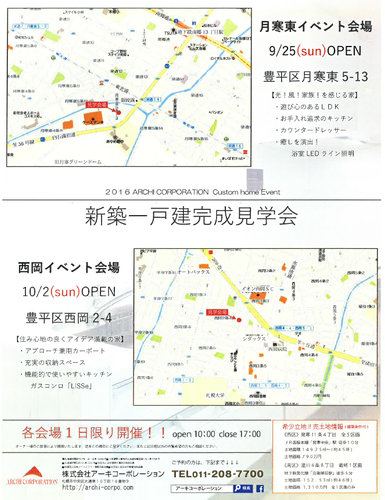 9/25 月寒東、10/2 西岡 にて各会場1日限りの見学会を開催致します!