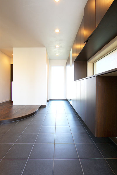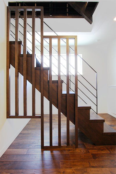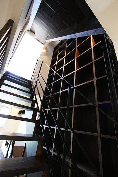 階段吹抜けの大きな本棚と屋上バルコニーのある家 K様邸 【階段吹抜けの大きな本棚と屋上バルコニーのある家】 階段吹抜けを利用した大収納の本棚を設け図書館の様に書籍を収納出来ます。アジアンテイストの小上がりダイニングやモザイクタイル壁、オールステンレスキッチン、おもちゃ箱をイメージした子供部屋、花火を楽しめる屋上テラスなどこだわりがぎっしり詰まっています。 延床面積 166.20 竣工年 2010